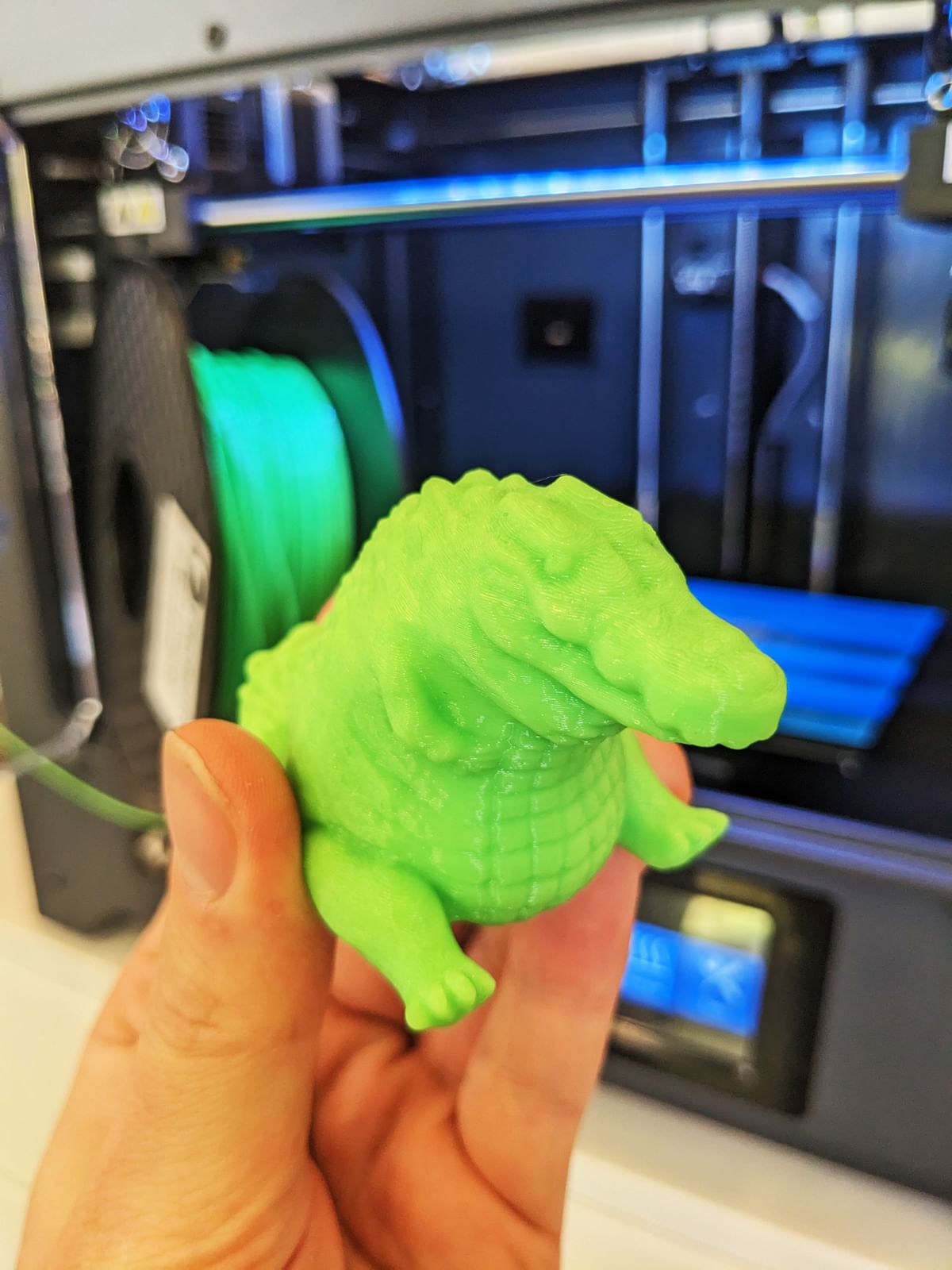 Utilising a vibrant green filament in our state-of-the-art Flash Forge 3D printer, we crafted this charming creature that quickly became a favorite around the office. In fact, our Digital Literacy officer Luke was so enamored with the crocodile that he printed an extra one as a heartfelt farewell gift for our beloved colleague Nicole. Nicole, you'll be dearly missed!