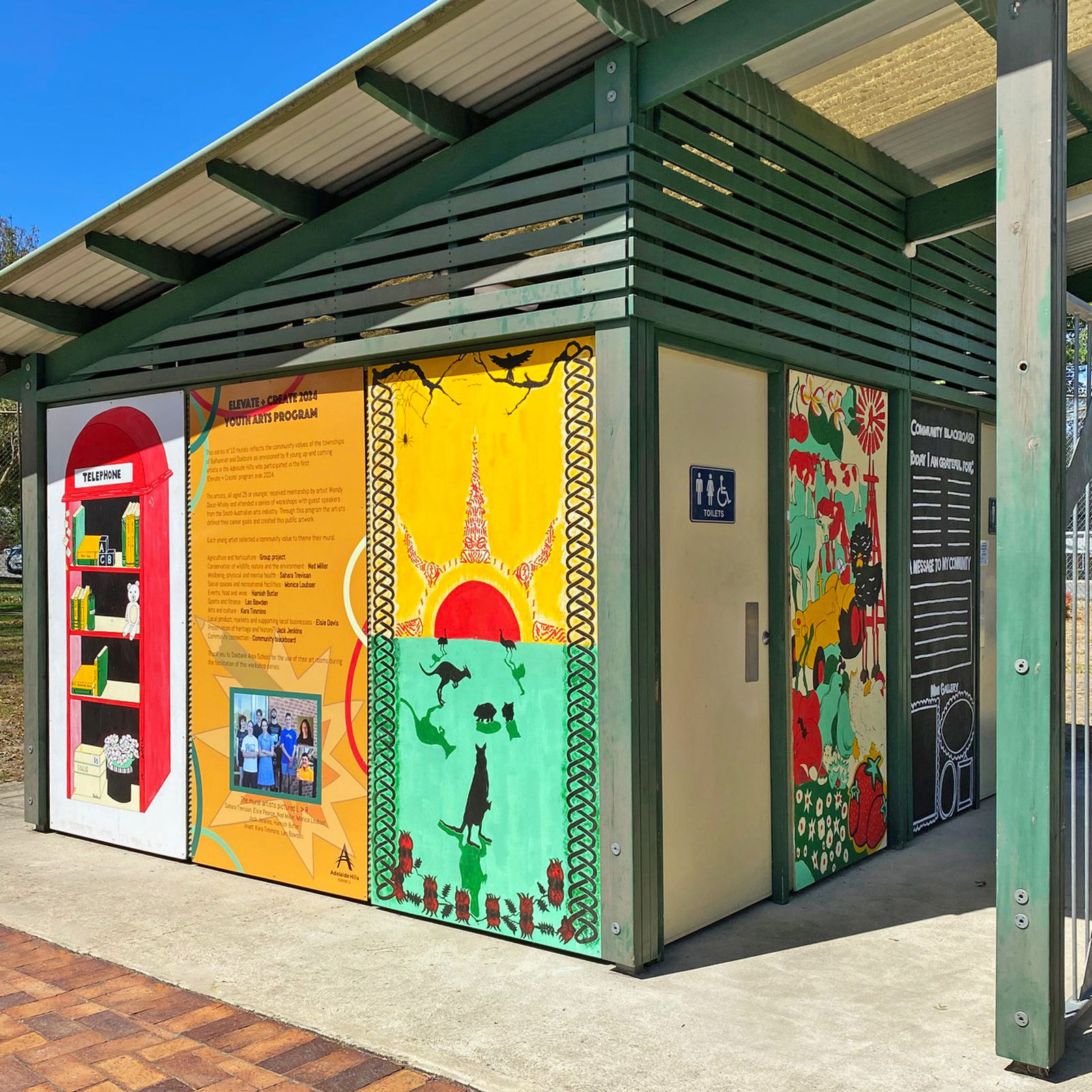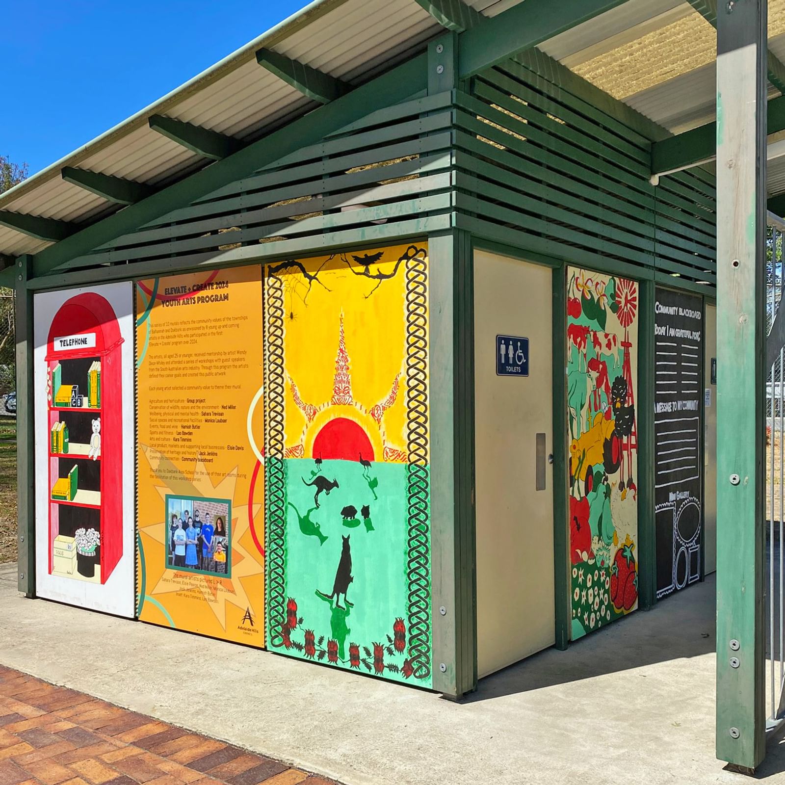 A vibrant new series of murals has transformed the Balhannah Oval Toilet Block, thanks to the Elevate + Create 2024 Youth Arts program.