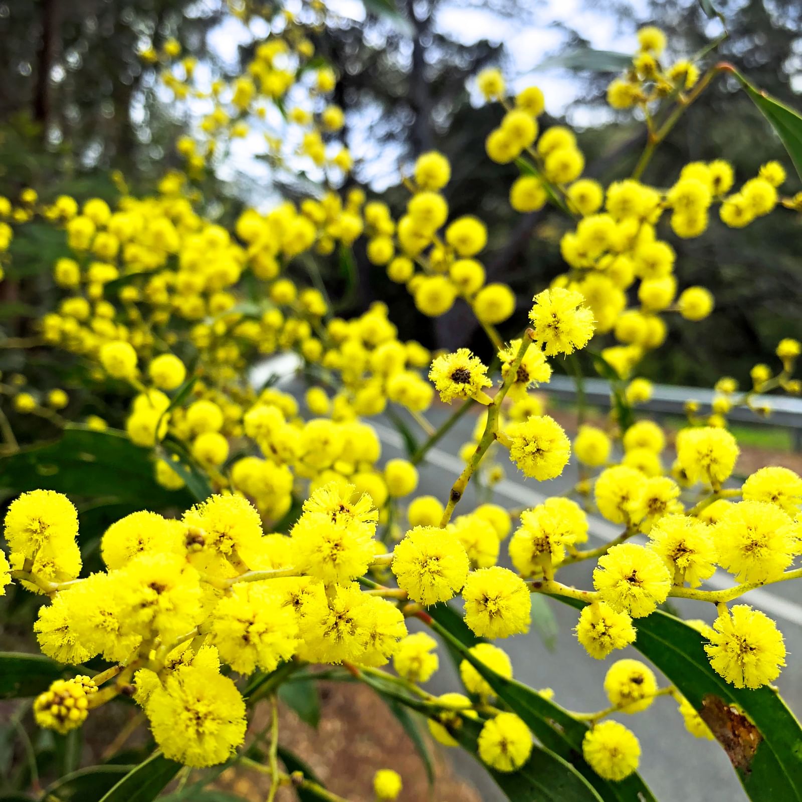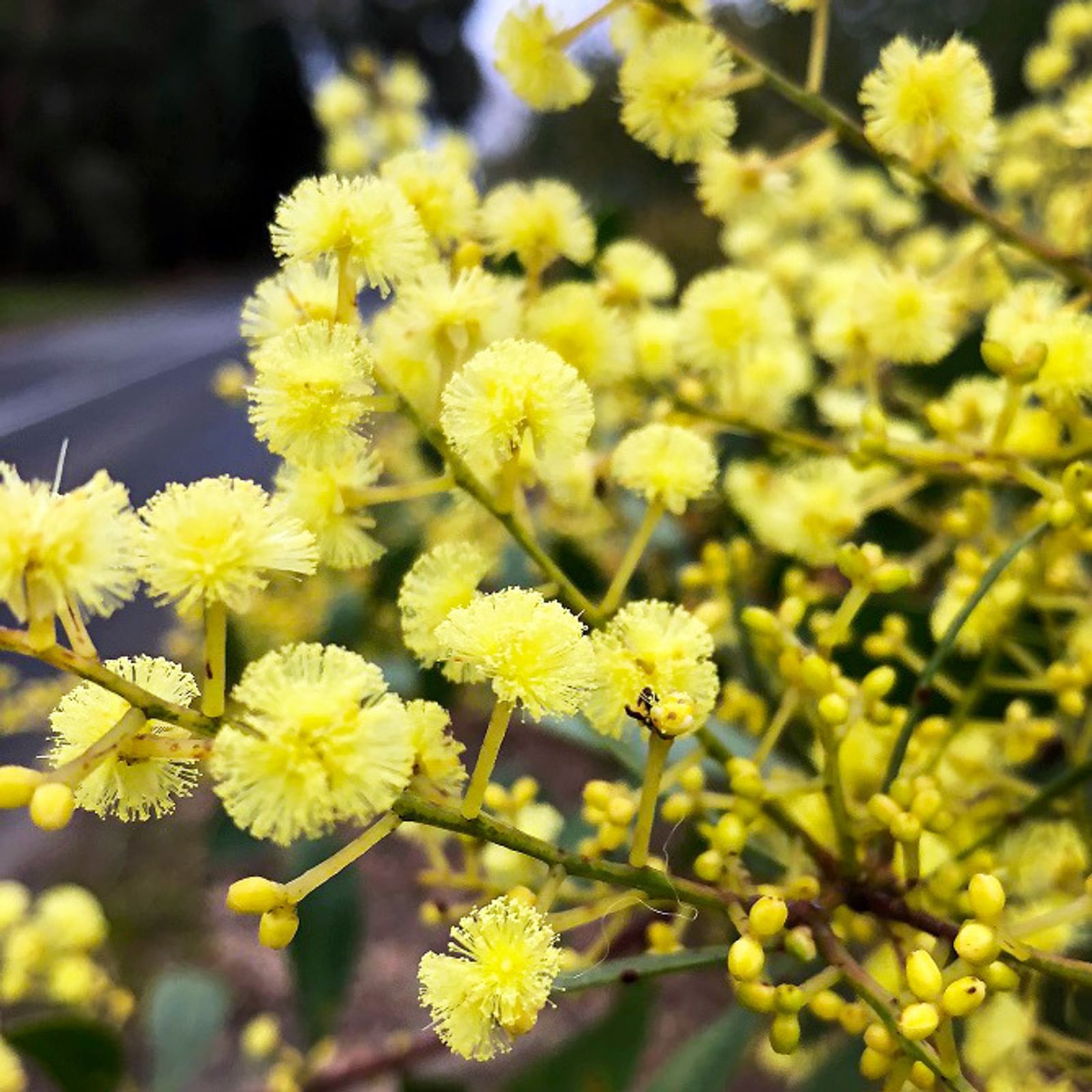 From left to right, three species of wattle native to the Hills region are in full bloom: