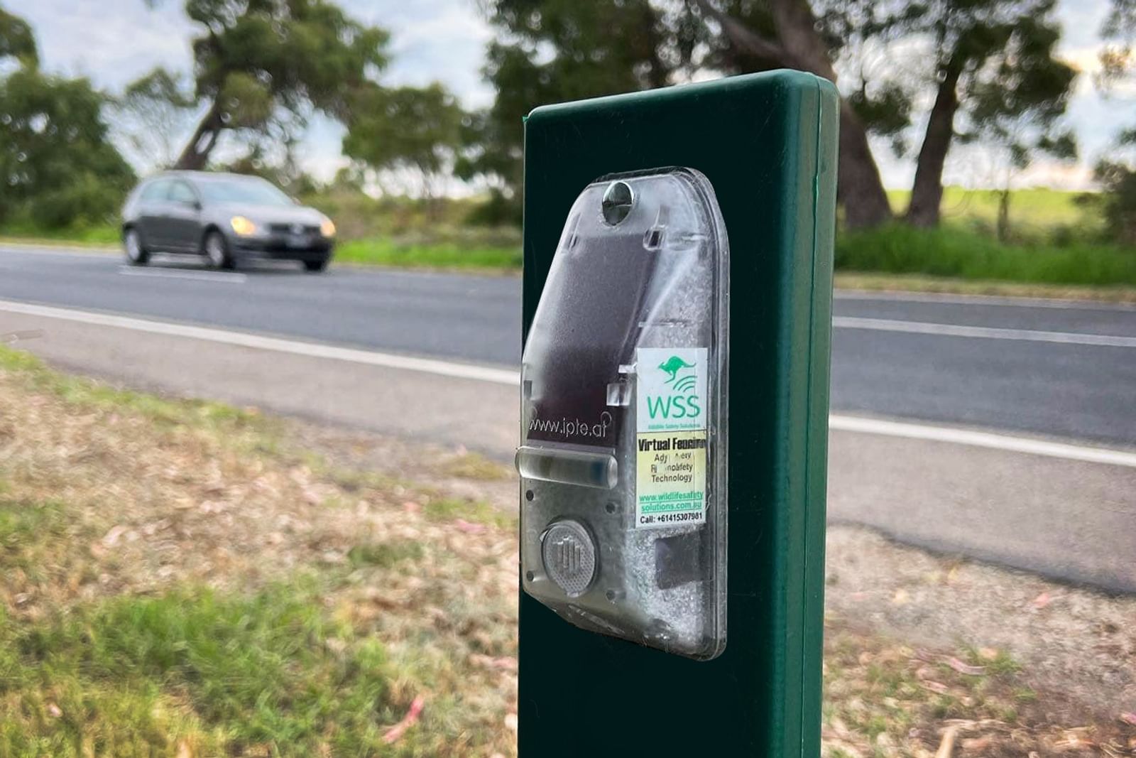 This 80km per hour stretch of road is a notoriously dangerous section of road for wildlife and domestic animals trying to cross the road. The installation of the virtual fencing devices aim to reduce the number of vehicle strikes that at night.