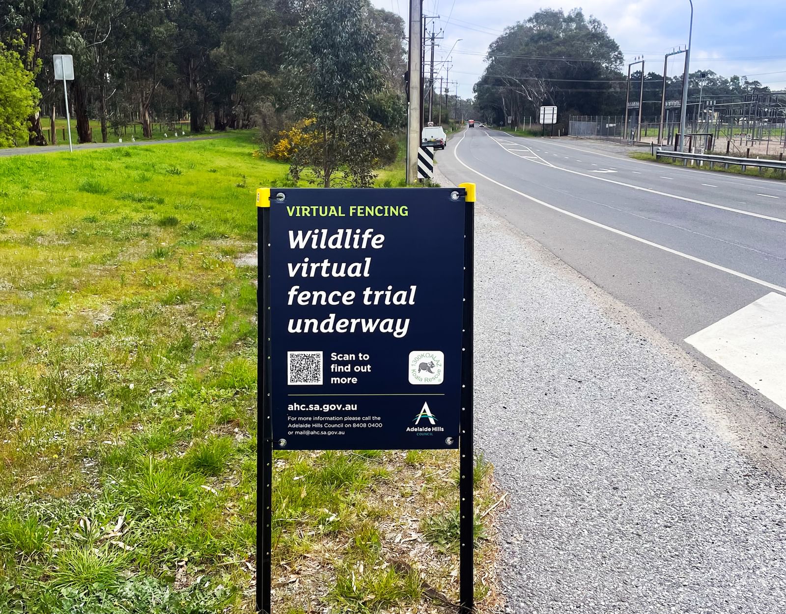 On September 18 Council Open Space staff erected the first stage of the virtual wildlife fencing along a 1.4km section of Onkaparinga Valley Road, between Riverview Road and Mappinga Road, Oakbank/Woodside area.