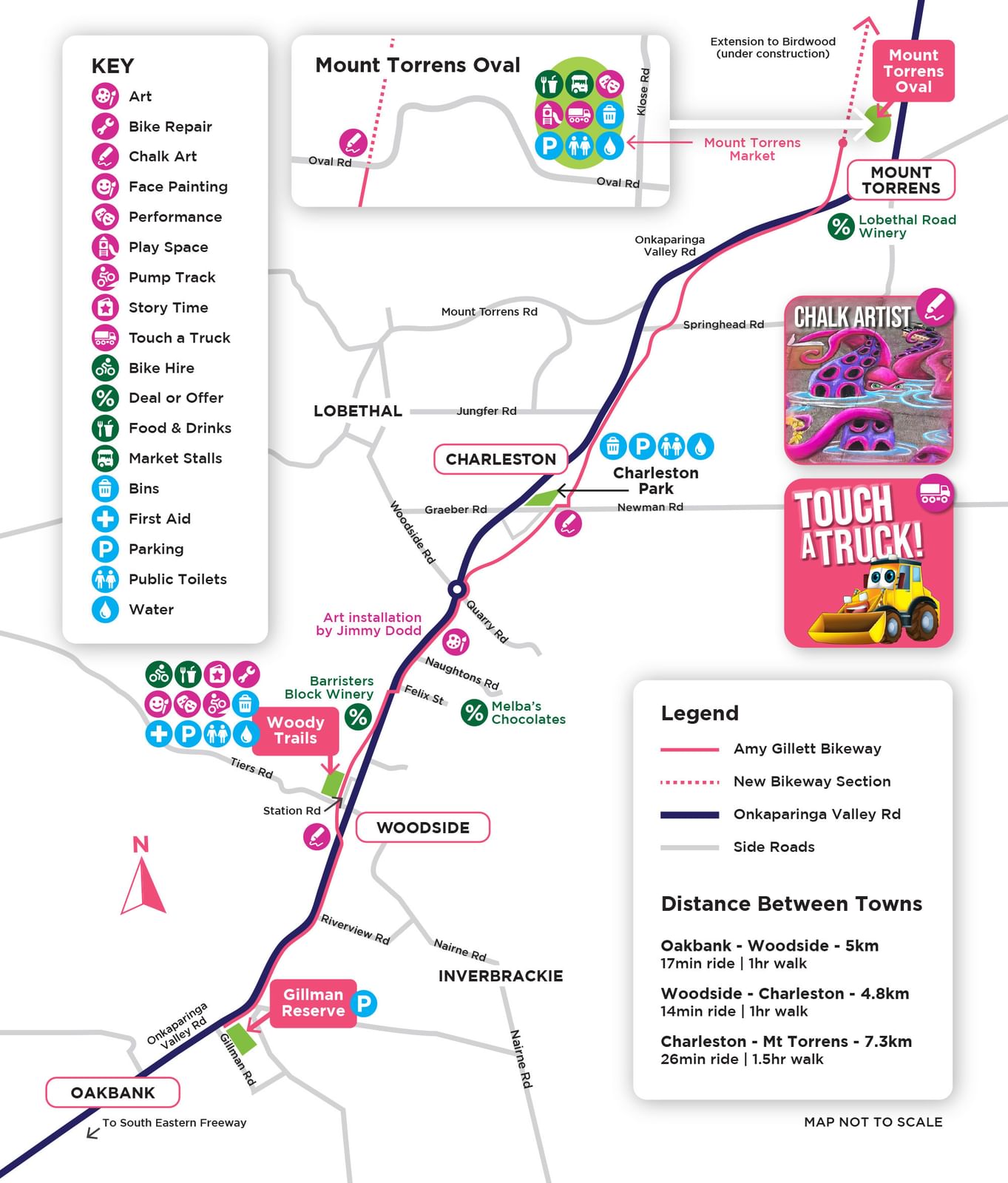 - 23+ km Amy Gillett Bikeway (paved, off-road) to ride, walk or run