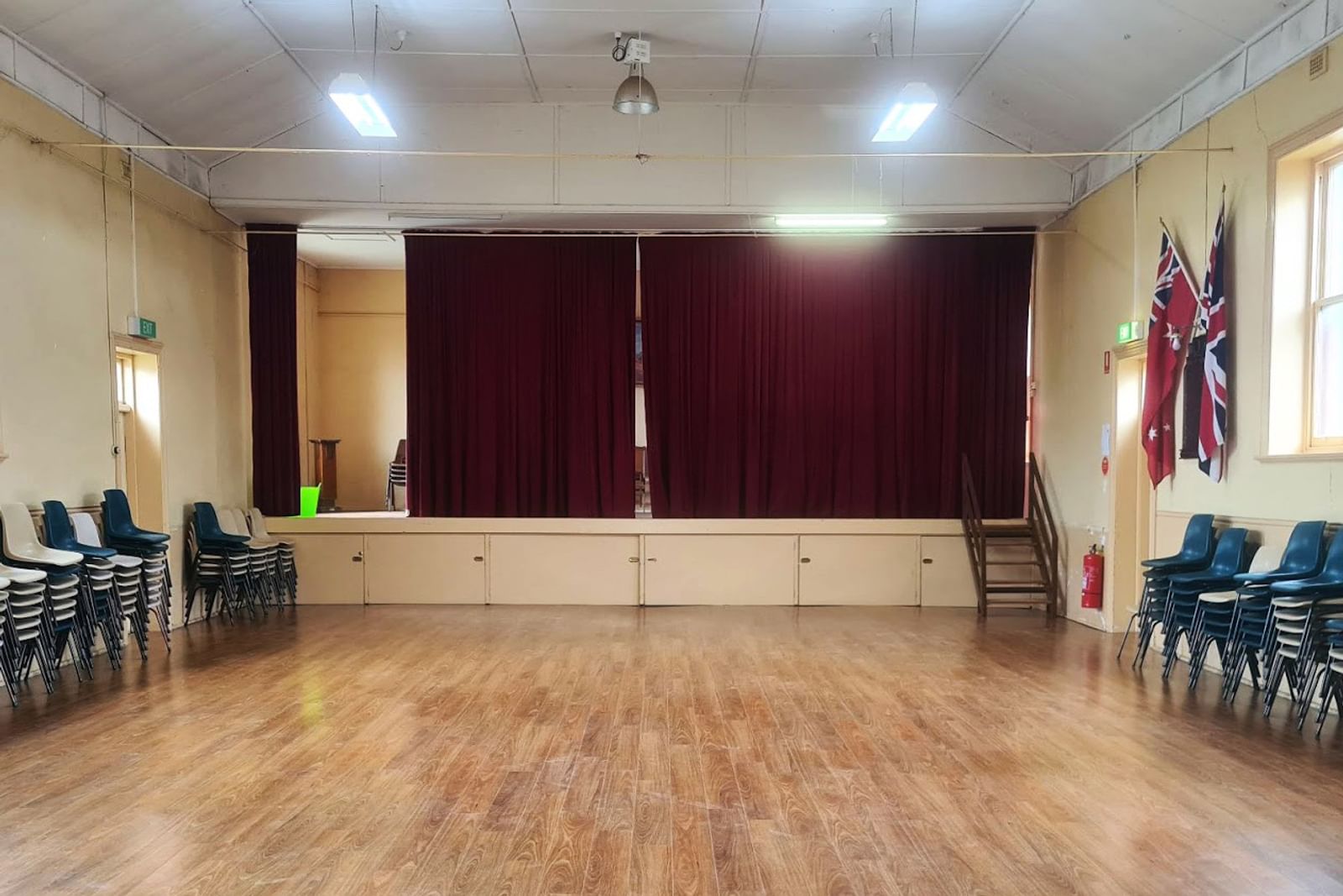 Featuring an open hall with a main stage, a meeting room and a fully appointed kitchen for meal and drink preparation. This historic building originally opened in 1923 and had a new addition in the 1960s.