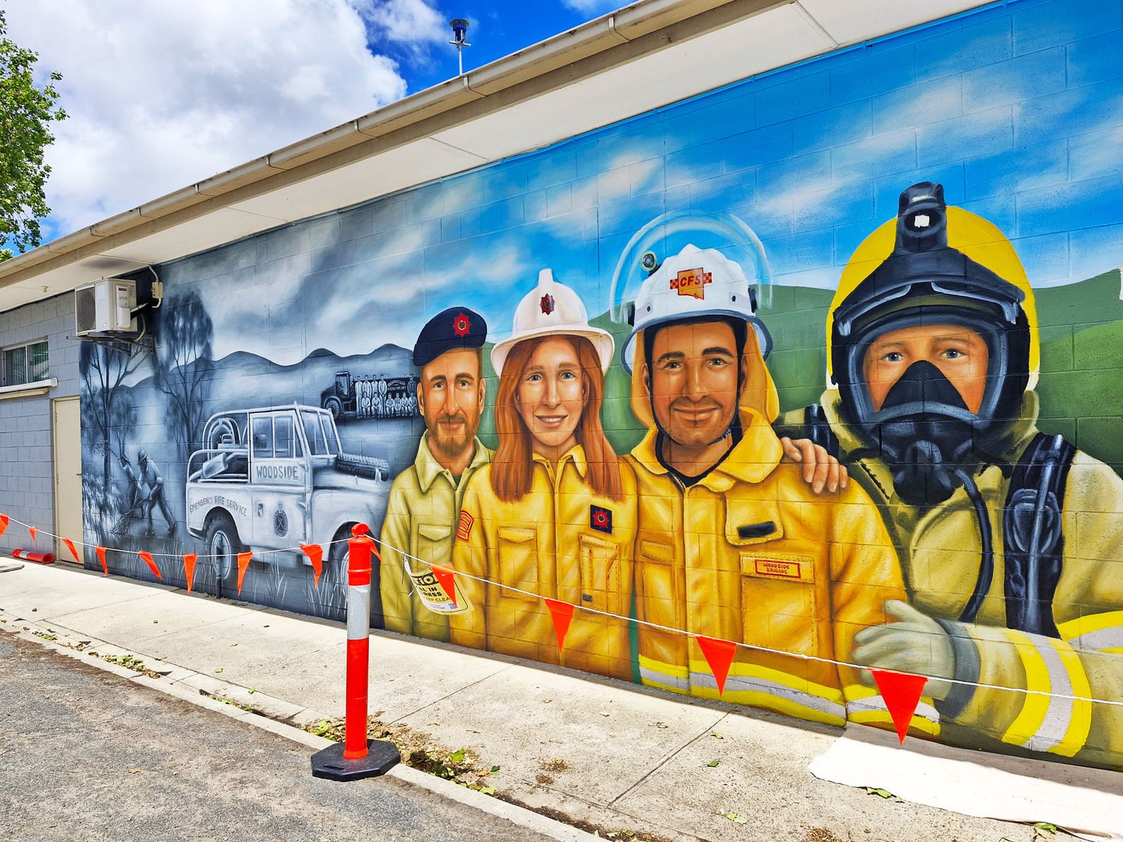 Located on the exterior of the Woodside CFS building, the mural is easily viewed from the street and offers a unique snapshot of local heritage and community spirit.
